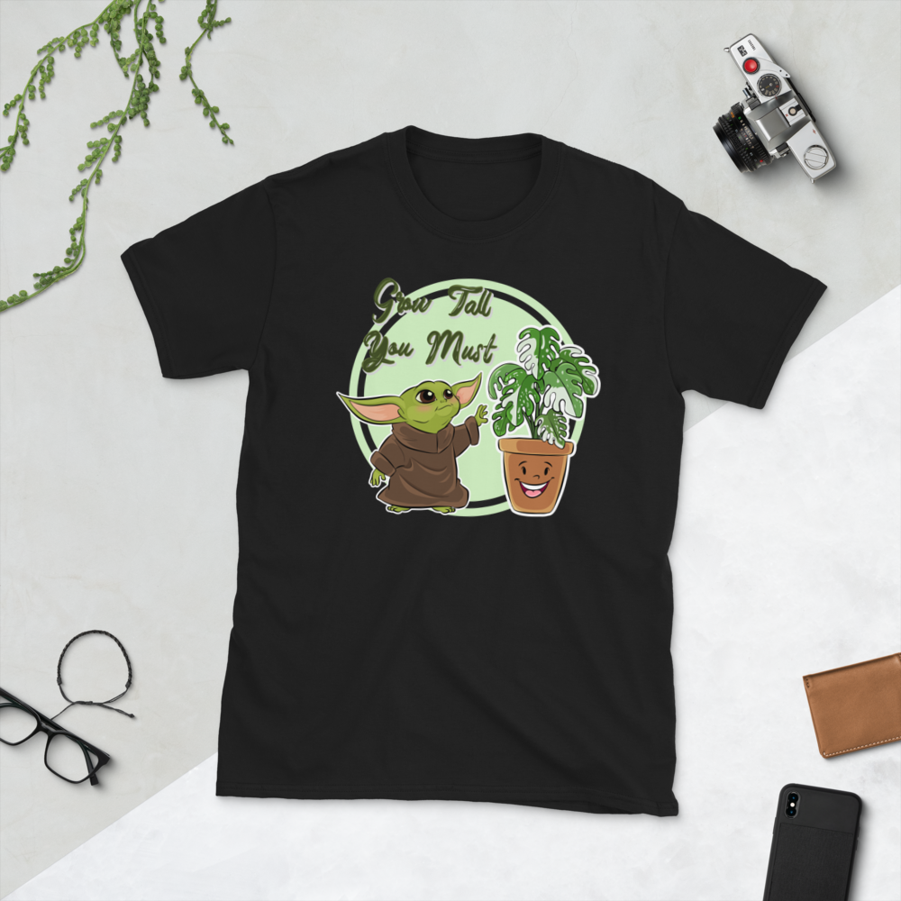 Our same cute, loveable Baby Yodle design, now in crew neck t-shirt. 100% ring-spun cotton is durable and pre-shrunk. Available in black or white. Show your houseplant enthusiasm with this wearable.